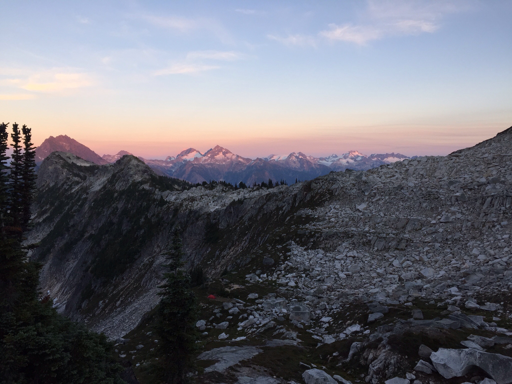 Sunset. My sense of scale was totally thrown off by the magnitude of the landscape. Check out the red tent near the bottom of the slope for scale.