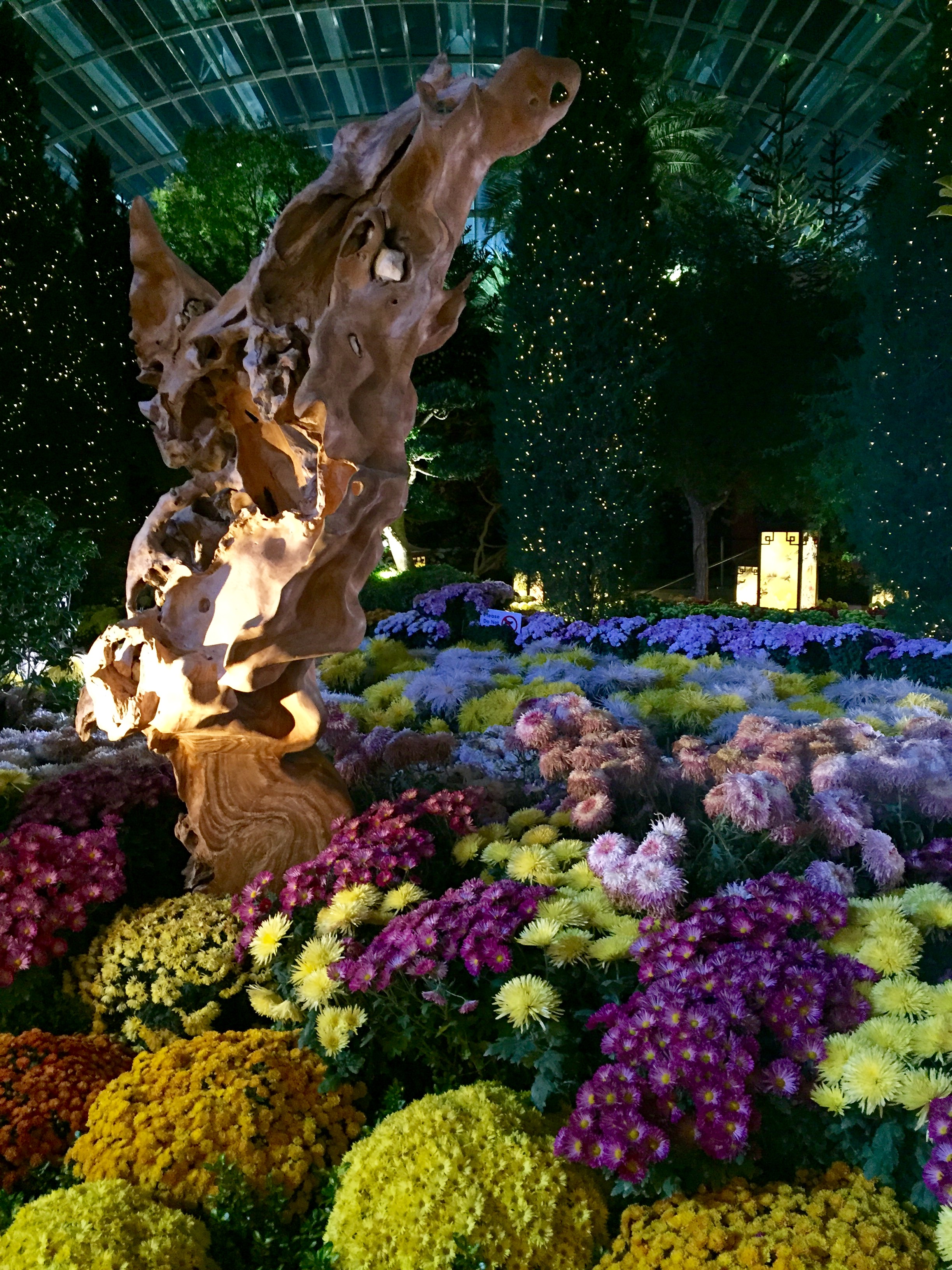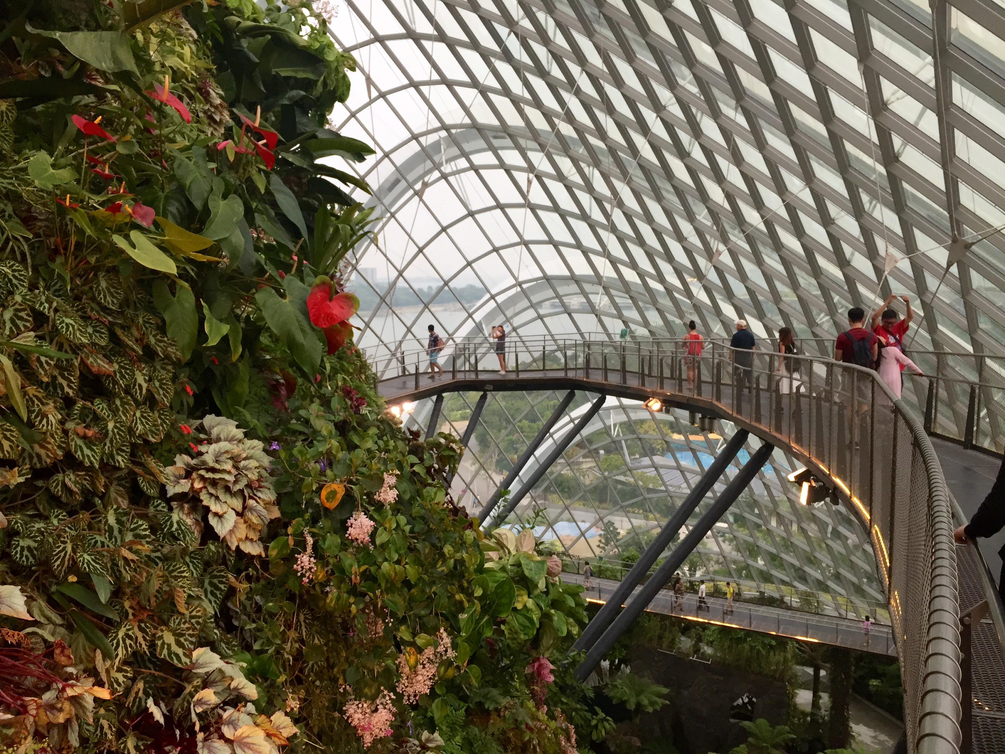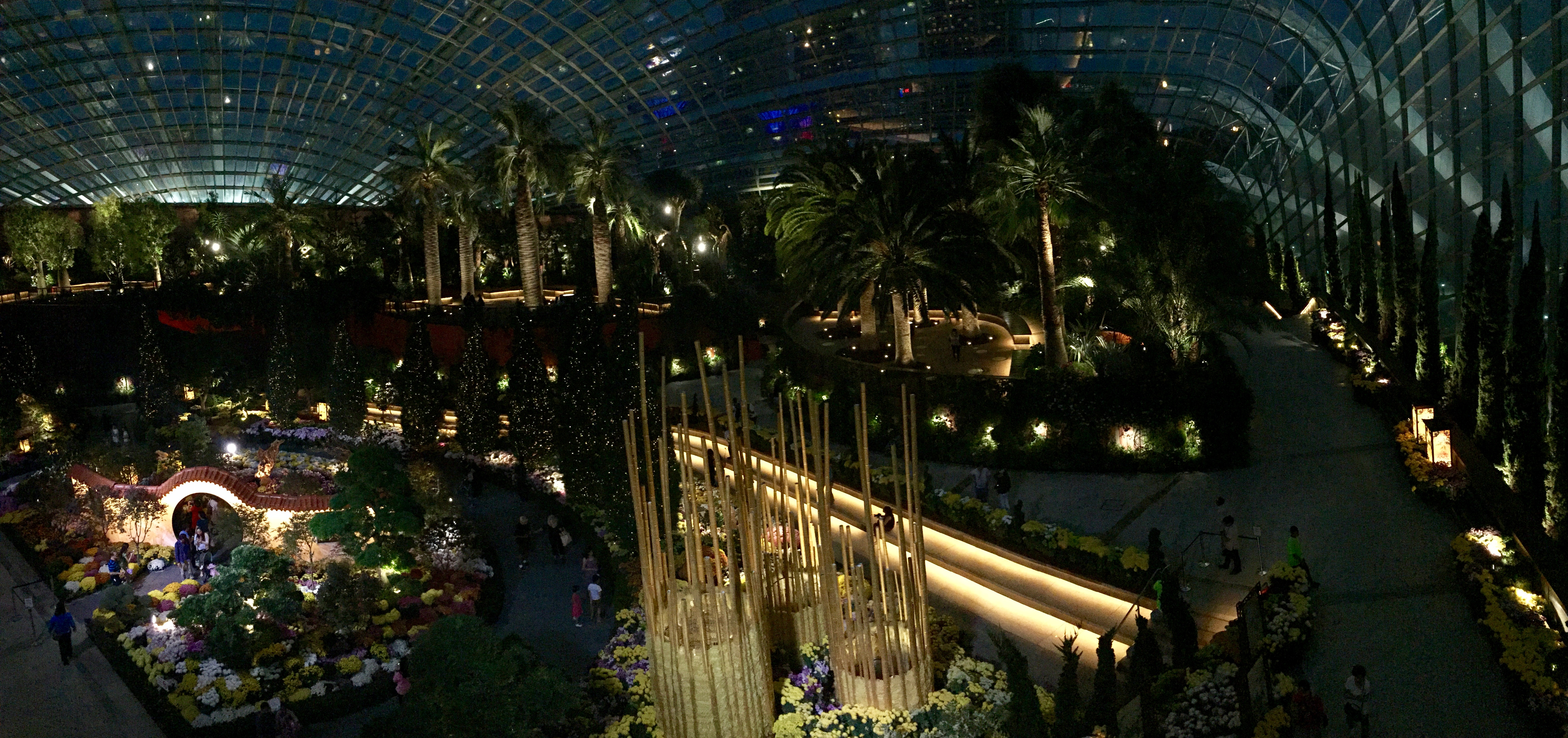 That evening I went to Marina Bay, home to two huge dome structures. One is a “cloud forest” and the other is a botanical garden. The whole area is also surrounded by various themed gardens. I took a bunch of pictures, but after night fell, the gardens really came to life. The botanical garden was peaceful and spectacular, with sculptures and lights dispersed throughout different “ecosystems”.