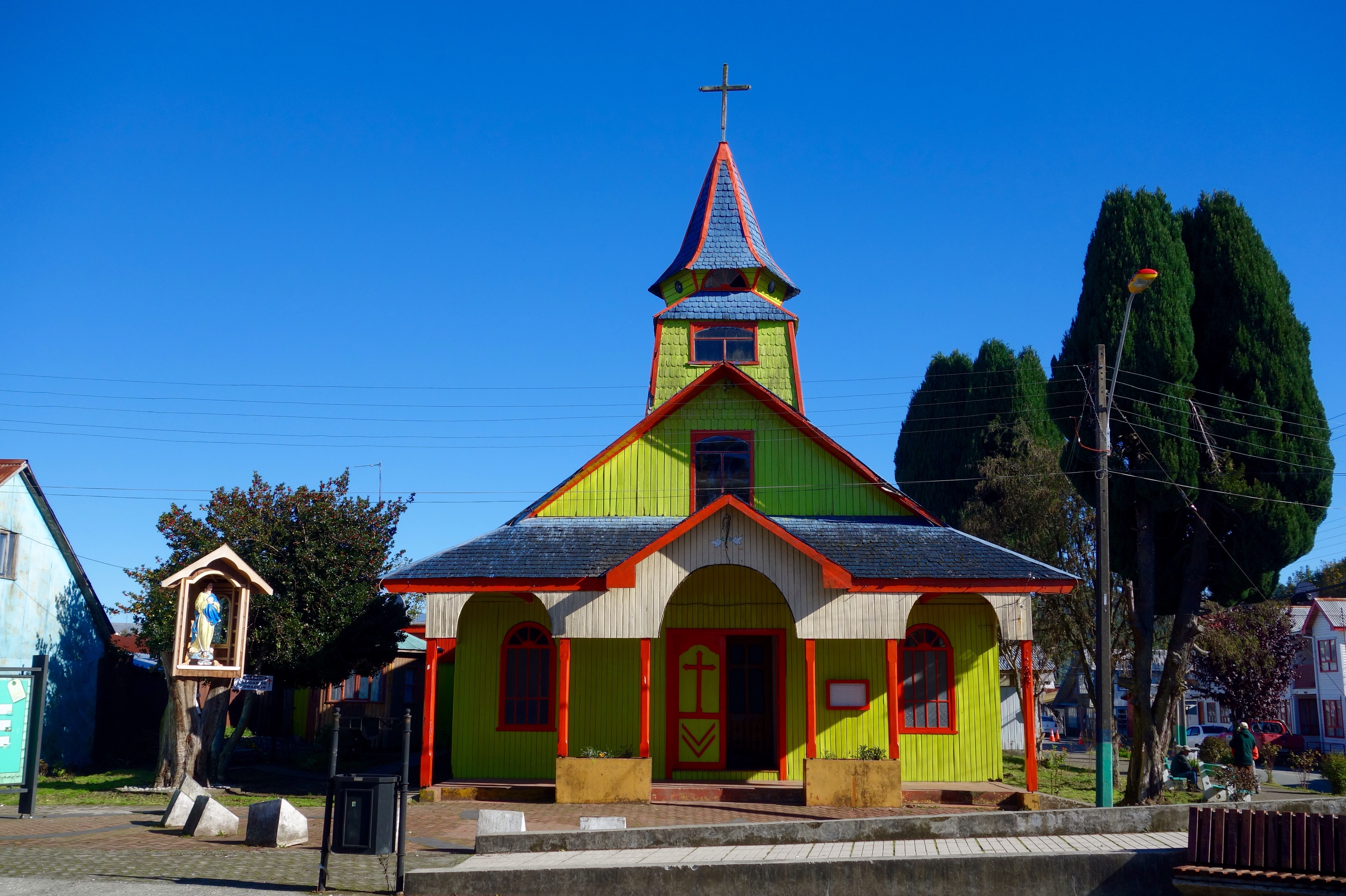 On the eastern coast of the island along the lower quarter of the top half (I’ll wait a moment…ok) are a number of fishing villages known for their friendly (if rough around the edges) inhabitants, unique churches and shellfish dishes. Joined by two girls I met at my hostel in Ancud I took a bus to the top of the main stretch and spent the day walking along the coastal beaches, over forested hills and through small plots of grassy farmland full of sheep and packs of guard dogs whose bark was hard to take seriously when they flopped over after a few seconds of ear scratching. It was a beautiful, relaxing day, but when it came to hitching a ride back to the bus station (about 15km away) at dusk we became well-aware of the incredible lack of cars driving on the road. Finally, just as the sun slipped over the hill we were picked up by someone who happened to be going exactly where we needed to go. We caught the last bus back to Ancud and the day remained a great one. It’s funny how these this always seem to work out.