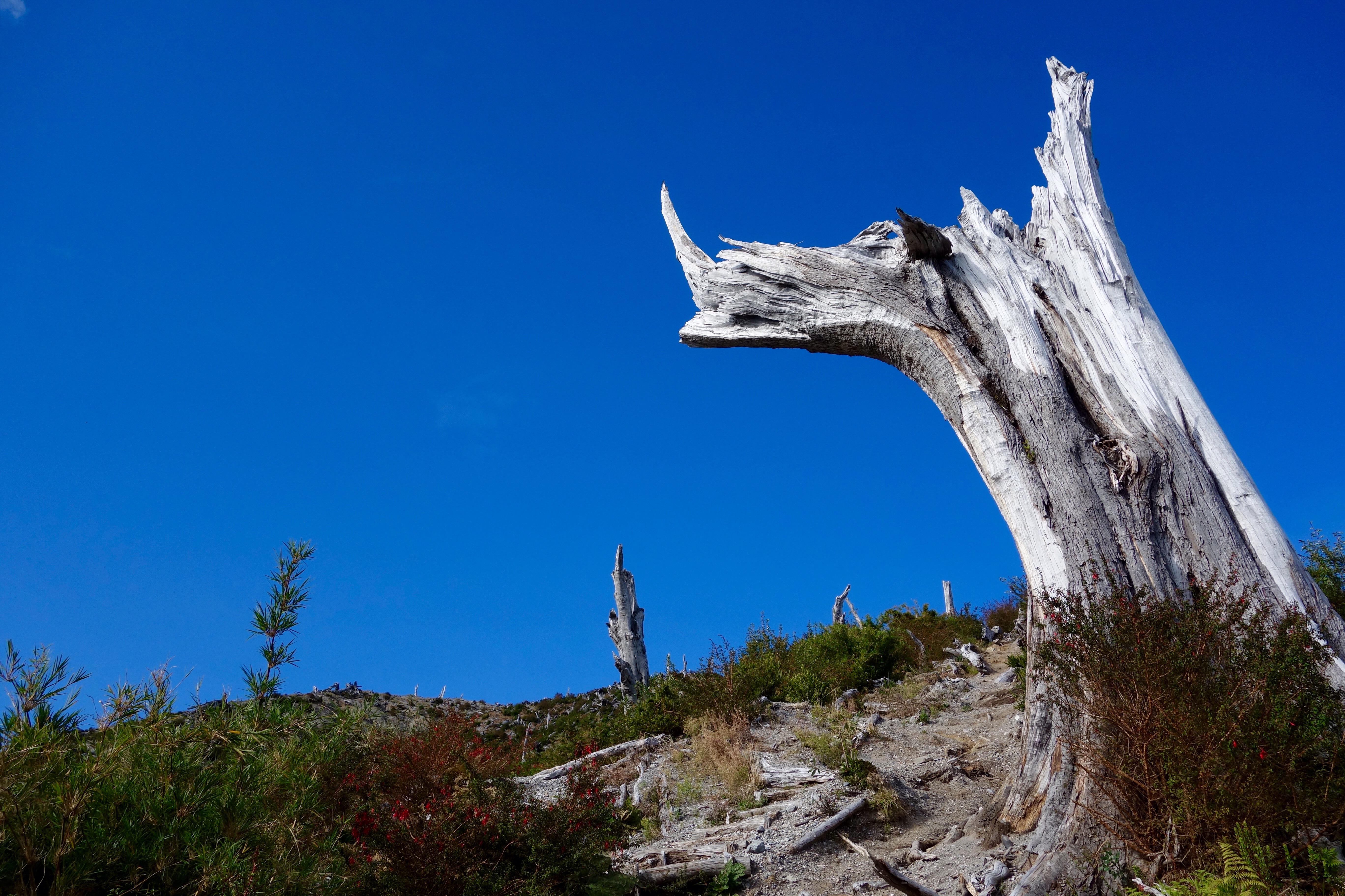 After reaching the bottom of the Pan-American highway in the nondescript town of Quellón, Chiloé (yes, a road extending from Alaska to Chile ends on an island…) I took a ferry to the small town of Chaitén back on the mainland. I planned on spending one day and ended up staying three. Chaitén is named after the resident volcano and in 2008, after 9,000 years of dormancy, the volcano erupted. In addition to spewing ash and gasses 31km (19mi) into the atmosphere, it caused a lahar (rapid melting of glacial ice) which caused a small river running through the town to become a much larger river about 400m wide. Almost instantly a significant portion of the town was washed out to sea. Evidence of the destruction and ongoing volcanic activity is well-apparent to this day. For geology nerds, the Chaitén eruption was also significant as the largest rhyolitic eruption in recorded history. Rhyolite is extremely viscous (it flows like toothpaste) and can form pumice (basically rock foam) and after complete degassing and rapid cooling, obsidian (rock glass). It is essentially the equivalent of volcanic granite in mineral composition.